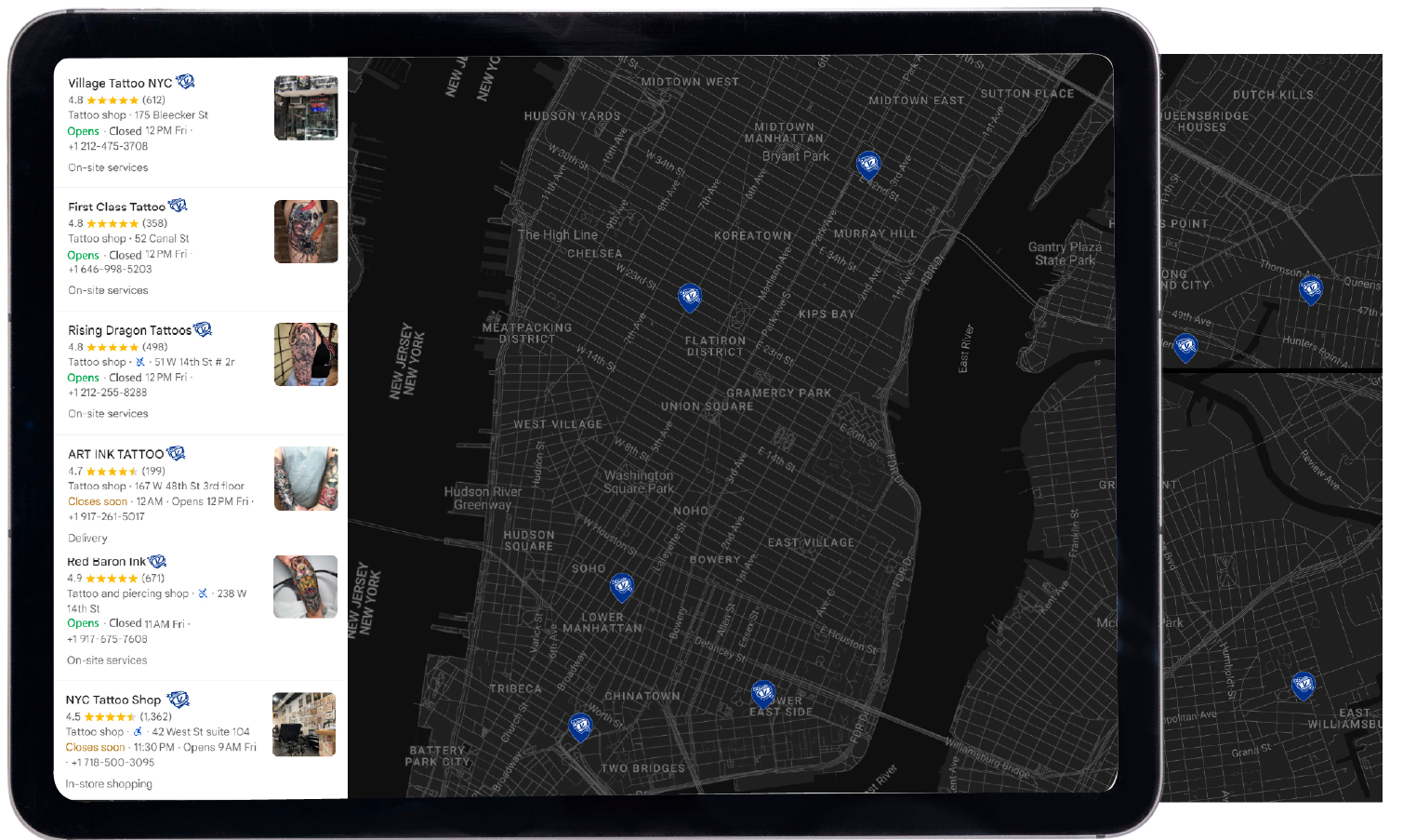 displayed on Google Maps